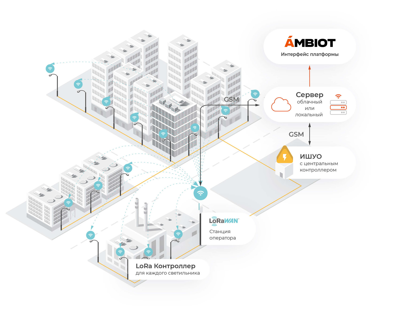 The platform provides interaction with devices using various exchange standards - from classic DALI and PLC to wireless protocols such as NB-IoT and LoRaWAN.