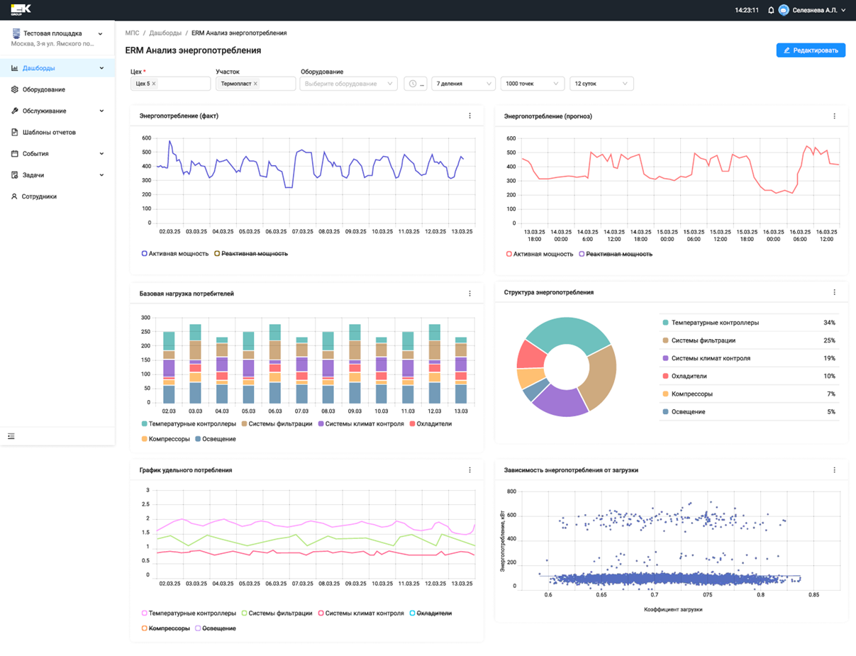 Ensuring uninterrupted equipment operation through early warning of deviations. A set of ready-made reporting forms with customization options helps analyze peak loads and efficiently redistribute energy consumption.