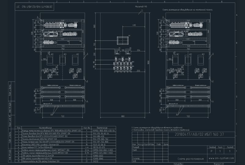 Creation of a general arrangement drawing for a control cabinet (VO, GOST 24.302-80)